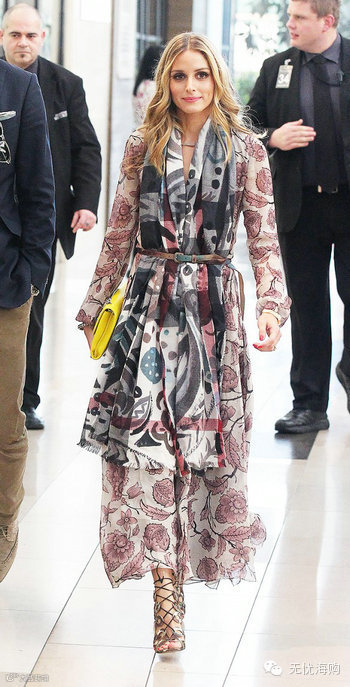 你需要像Olivia 这样随意的从脖子后面披下来,再用皮带系在腰间,又有腰身又时髦~