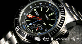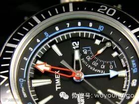 红色的分针和温度指针非常抢眼,蓝色的功能性刻度标志和深度指针,提升辨识度的同时又不会过于抢眼,可谓设计的层次很足,TIMEX招牌式的INDIGLO®夜光表盘。