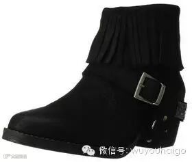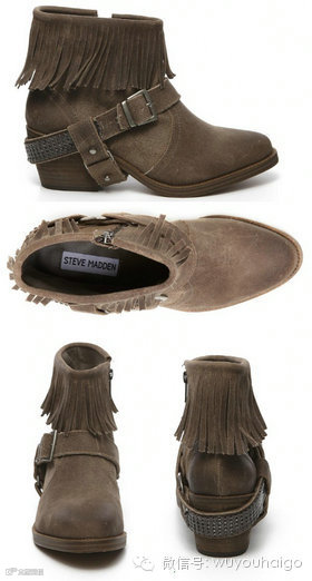 Steve Madden Women's Cavvvo Western Boot女士流苏短靴,典型的西部风格,采用高等级反绒皮鞋面,做旧处理,皮带装饰设计,并带了闪闪的金属,宽松鞋口,穿脱方便,仿木中跟设计,穿着舒适,款式休闲。发货重量4磅。