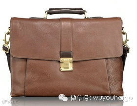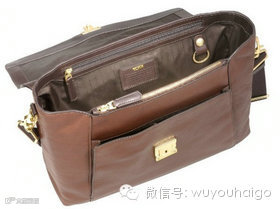 Flap Briefcase途米15.5寸复古公文包,尺寸约为30x 40x 250px,全粒面顶级牛皮,浅棕色包面,底面、提手以及其他细小装饰部位为深棕色,底部加了三块防磨损与底面相同的真皮,增加了耐用性。