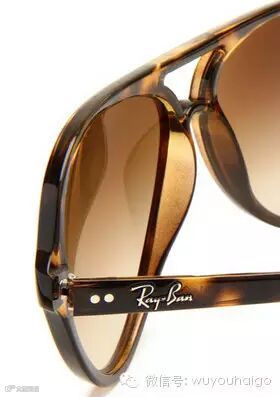 镜片左侧上部为Ra-yban 的logo,右侧边有防伪RB花体签名。镜片宽度59mm,鼻梁宽度15mm,镜腿长度140mm,意大利原产。