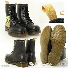 这个款式本来是为Docklands巡警而设计的。最具标志性的就是它的8孔鞋帮,以及鞋边黄色针步及独特的鞋印图案,在当年大获好评,成为流行数十年的潮流文化标记。
