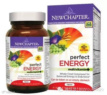 New Chapter Perfect Energy Tablets新章完美能量综合营养素,采用全部从纯天然有机植物中提取的维生素和草本精华,如有机玛卡,西洋参,及红景天等,能提高身体机能,使人精力充沛。每粒含有葡萄籽精华成分100mg,能提供强大的抗氧化剂,清除体内的自由基及毒素,预防、减少疾病发生,抗衰老,减少肌肉酸痛,促进恢复精力。包含23种维生素和矿物质例如维生素B、C、E和硒等,满足日常身体所需的各种营养素,另外包含的花卉精华,可缓解压力、疲劳和焦虑等症状。