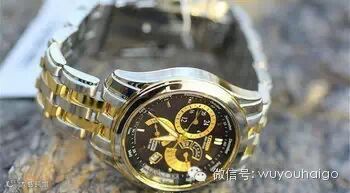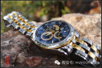 表盘直径39mm,厚度仅有10mm,适合多数人佩戴。表盘指针多得让人有些眼花缭乱,包括大三针时间显示、万年历、星期、12/24小时显示、闹钟显示等,耐磨抗反射矿物玻璃表镜,防水100米。