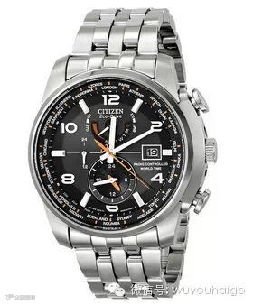 Citizen Men's AT8020-03L "Blue Angels World A-T" Eco-Drive Watch西铁城光动能电波男表,以“蓝天使”飞行表演队命名,使用不锈钢表壳和合成革表带,以及耐磨抗反射蓝宝石玻璃表镜。