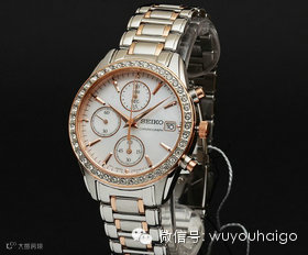 女表最重要的是要好看,这款精工女表就好看到让人有一见钟情的赶脚,好看的女表的几个要素都具备了,神马珍珠贝母+水钻+玫瑰金,总之就是怎么闪亮怎么来。