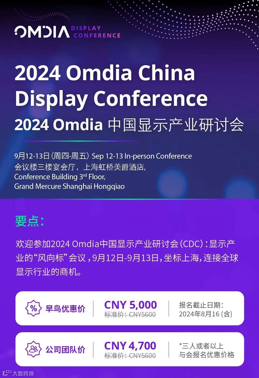 Omdia中国显示产业研讨会是行业内最具深度及影响力的峰会,近20年连续为业内人士营造交流学习平台。汇聚近150位行业专家和产业伙伴,CDC将为您提供来自市场、应用和技术视角的详细见解,并让您有机会与全球显示行业的关键人物建立联系,开启全球显示产业的无限商机。