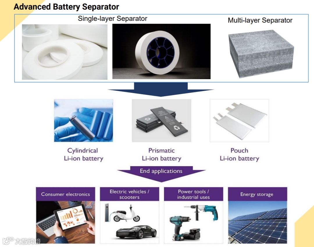 (1)锂电池隔离膜 - 采用对环境友善的干法制程,透过特殊配方和拉伸技术,产出特性、均匀性良好的多孔薄膜。微孔隔膜制成之锂离子电芯,可应用于消费、动力、储能, 并根据客户不同需求进行订制、共同合作开发。