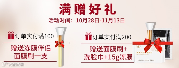 10月28日-11月13日 订单实付满100元送面膜刷;