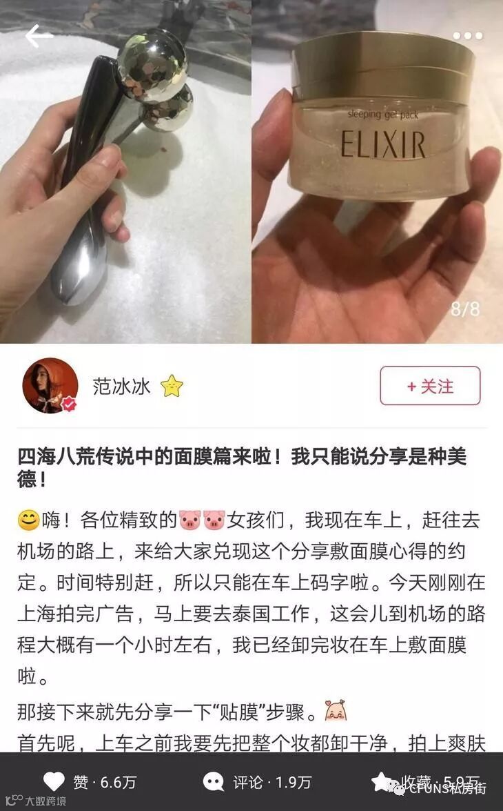 ▼截图自范冰冰小红书的分享:Refa按摩滚轮和其他某牌睡膜▼