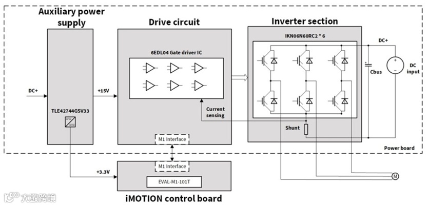 评估板EVAL-6EDL04I065PR采用英飞凌最新的采SOI技术的EiceDRVIER™栅极驱动器6EDL04I065PR和TRENCHSTOP™逆导型IGBT,IKD06N60RC2,适用于驱动无刷直流(BLDC)电机等。