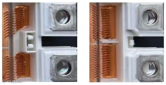 图8.EconoDUAL™3交直流功率端子与内部DCB连接图,FF600R17ME4(左),FF900R17ME7(右)