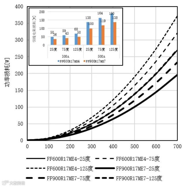 图10.FF600R17ME4和FF900R17ME7内部引线电阻损耗对比