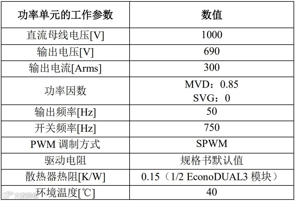 表1.MVD和SVG功率单元的额定工况