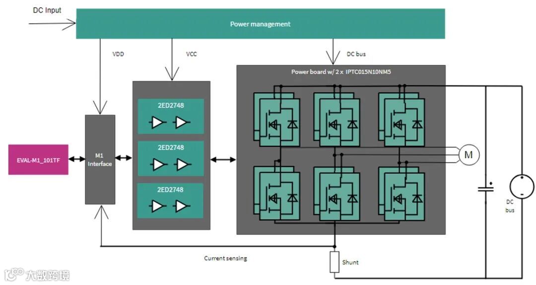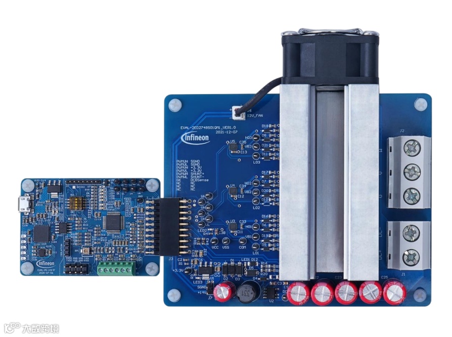 用于电池供电应用(BPA)的EVAL-2ED2748S01GM1评估套件包括一块三相逆变器功率板,该功率板带有额定电压为160V的2ED2748S01G(3x3 10引脚DFN封装)半桥栅极驱动器,可驱动12个额定电压为100V的OptiMOS™ MOSFET IPTC015N10NM5(HDSOP-16封装)。功率板上有一个M1连接器,用于连接配有iMOTION™模块化应用设计套件(MADK)控制卡-EVAL-M1-101T。