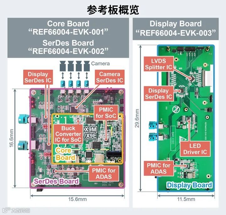 全球知名半导体制造商罗姆(总部位于日本京都市)与领先的车规芯片企业芯驰科技面向智能座舱联合开发出参考设计“REF66004”。该参考设计主要覆盖芯驰科技的智能座舱SoC*1“X9M”和“X9E”产品,其中配备了罗姆的PMIC*2、SerDes IC*3和LED驱动器等产品。另外,还提供基于该参考设计的参考板“REF66004-EVK-00x”,参考板由Core Board、SerDes Board、Display Board三部分组成。关于参考板的更详细信息,请通过罗姆官网的“联系我们”页面进行垂询。