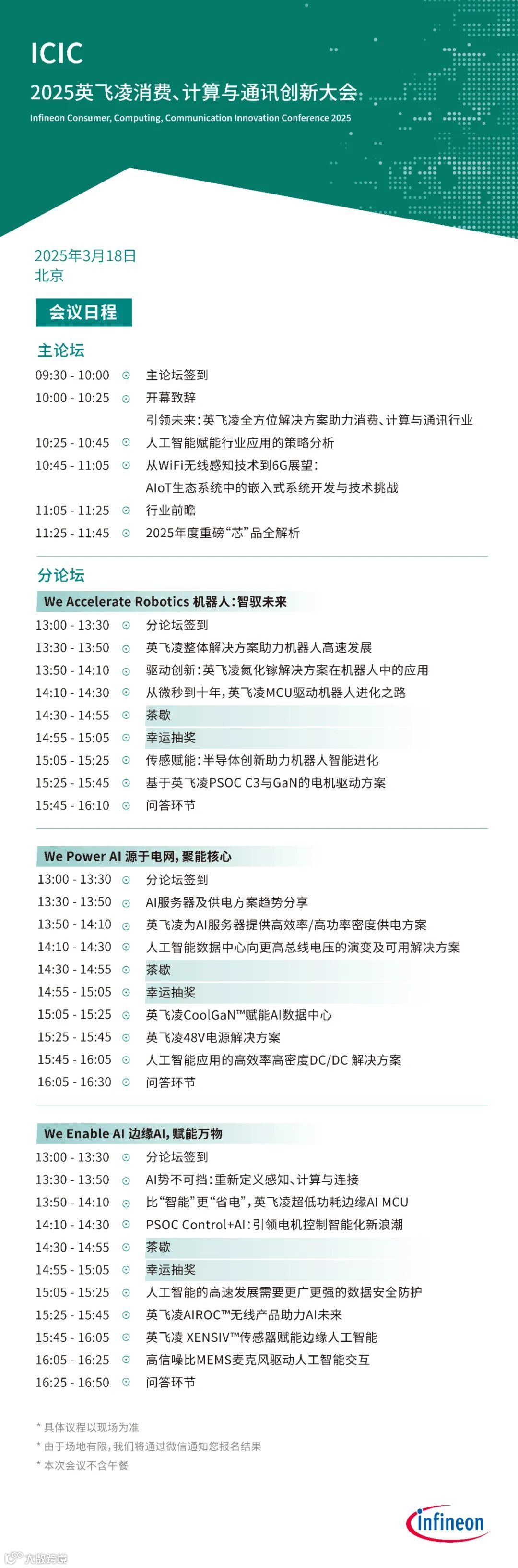 2025年是英飞凌进入中国市场的第30个年头,值此特别时刻,英飞凌将隆重举行“2025英飞凌消费、计算与通讯创新大会”,诚邀您莅临参会,与行业先锋们一同探索无限可能。