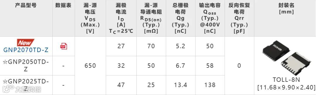 全球知名半导体制造商ROHM(总部位于日本京都市)已将TOLL(TO-LeadLess)封装的650V耐压GaN HEMT*1“GNP2070TD-Z”投入量产。TOLL封装不仅体积小,散热性能出色,还具有优异的电流容量和开关特性,因此在工业设备、车载设备以及需要支持大功率的应用领域被越来越多地采用。此次,ROHM将封装工序外包给了作为半导体后道工序供应商(OSAT)拥有丰富业绩的日月新半导体(威海)有限公司(ATX SEMICONDUCTOR (WEIHAI) CO., LTD.,以下简称“ATX”)。