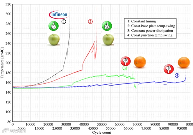 因此,功率器件自身的功率循环(PC)能力,和实际加载的温度变化大小,共同决定了器件在应用中功率循环(PC)寿命的多少。