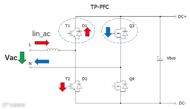在单相图腾柱PFC的慢管位置:有单向充电的二极管,也有V2X双向需求的IGBT单管或者Si MOSFET单管方案。