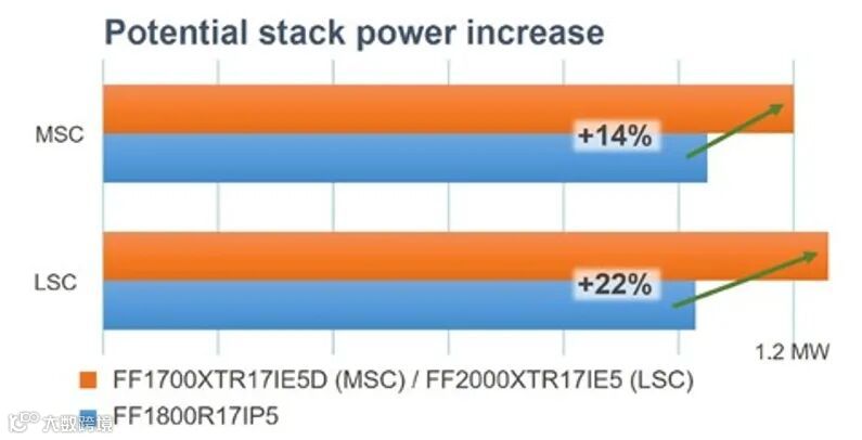 为了针对变换器进行专门优化,从而进一步提高模块的性能表现,我们调整了芯片的尺寸,以减少芯片的通态损耗,并针对承受最重负载的芯片,进一步提升了其热导率。如图3所示,LSC专用模块的芯片尺寸比例倾向于采用更大的IGBT,而MSC专用模块则集成了较大的二极管。为了优化LSC而进行的这两项设计改进,引入了两个模块:针对LSC进行优化的FF2000XTR17IE5模块,以及针对MSC进行优化的FF1700XTR17IE5D模块。