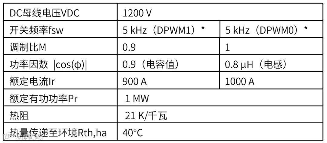 图4展示了在风力变流器系统的典型应用中,这两个专门设计功率模块的优势所在。表1列出了仿真依据的相应操作条件。需要注意的是,与图4所示的标准模块相比,变流器功率的显著增加仅通过更换功率模块来实现,变流器和控制的其他元件均保持不变。
