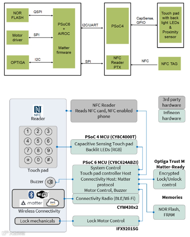 英飞凌自豪地推出一系列支持Matter最新协议的芯片和系统方案,涵盖基于微控制器PSoC™ 4和PSoC™ 6,无线产品AIROC™ CYW43012,马达驱动MOTIX™ IFX9201SG,安全芯片OPTIGA™ Trust M SLS32AIA010MLSON10XTMA9, NOR flash SEMPER™ S25HL512TDPMHI010。此次展示的智能锁演示(Smart Lock demo)成为了实际应用的绝佳实例,加入了出色的马达控制能力和高效的Flash存储的系统解决方案。