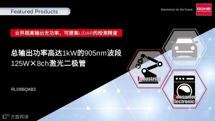ROHM开发出1kW级高输出功率红外激光二极管“RLD8BQAB3”!~125W×8ch高输出阵列,可大幅延长LiDAR应用产品的测量距离并显著提高分辨率~