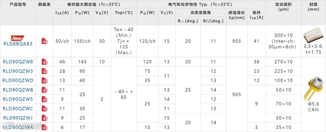 <LiDAR用高输出功率激光二极管产品阵容>