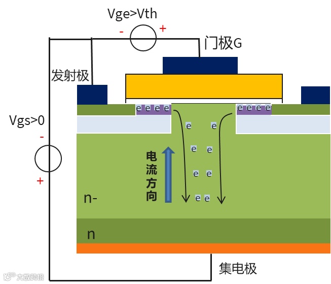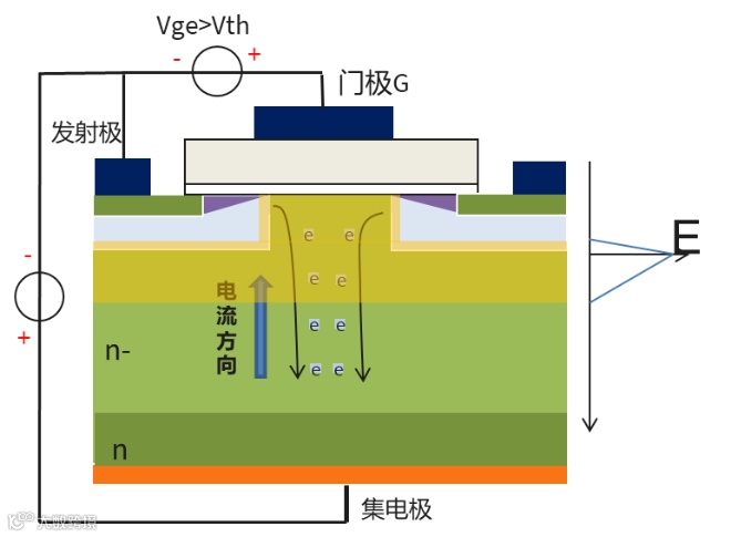 先以IGBT为例,看一下短路时,功率器件内部发生了什么?