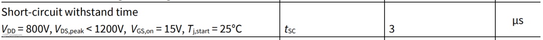 TO247 3pin 封装的IMW120R030M1H中,关于短路时间的定义: