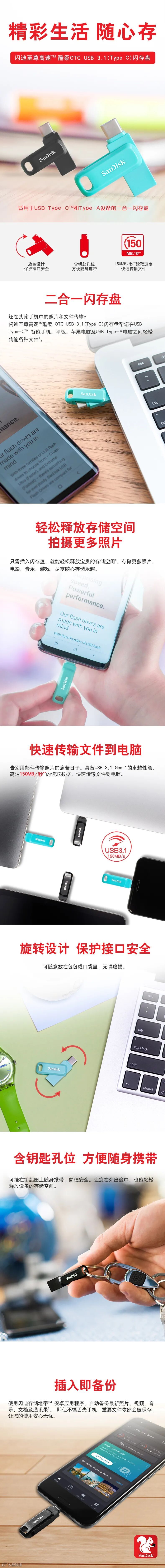 导读:闪迪至尊高速™酷柔OTG USB 3.1(Type C)闪存盘