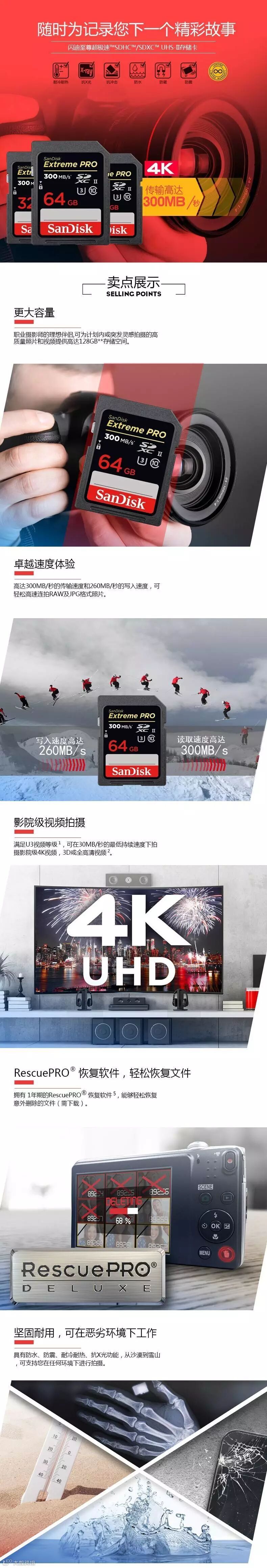 兼容性: SDXC (64GB -128GB) 存储卡与支持 SDXC,SDXCUHS-I和SDXC UHS-II的主机设备兼容,SDHC (32GB) 存储卡与所有支持 SDHC/SDXC ,SDHC/SDXC UHS-I和SDHC/SDXCUHS-II的主机设备兼容;