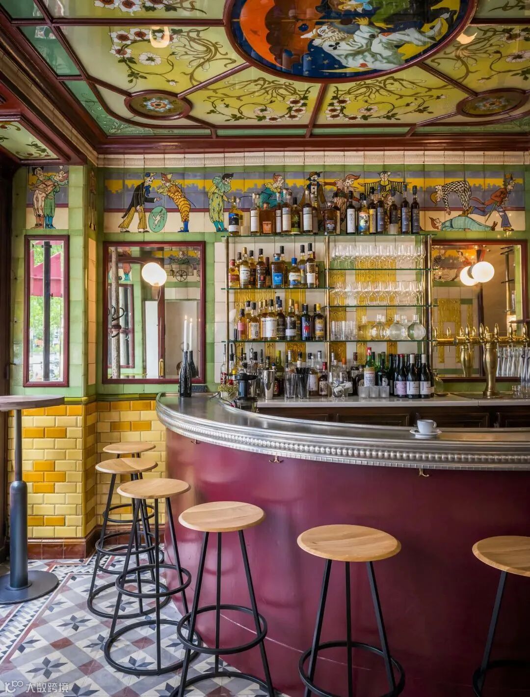 坐落在拱廊的一角的餐厅门口,你还能看到当年咖啡馆的痕迹;室内手工彩绘的墙壁天花板、铜制的人像雕饰、垂下的华丽水晶吊灯,每一处细节都仿佛在向你叙述曾经发生在这里的传奇。