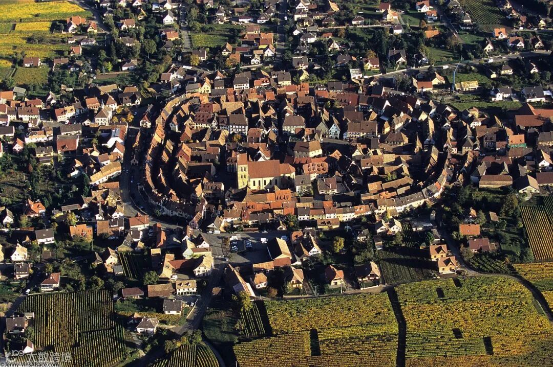 埃吉桑至今仍保留有浓厚的中世纪建筑风格,2003年入选“法国最宜居小镇”。这里是教皇利奥九世的出生地,更以生产优质的阿尔萨斯葡萄酒享誉世界。从空中俯瞰,小镇的构造是同心圆的形式:以小镇中央的城堡和礼拜堂为圆心,一圈圈扩散开。