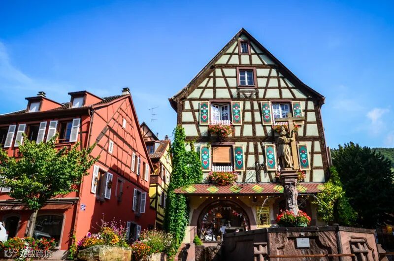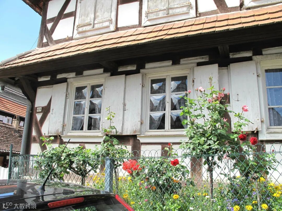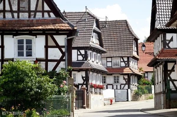 当地的建筑同样是以木筋房为主,多是18-19世纪建造的,房子上会有明显标注建造的年份。当地政府并没有对木筋房进行涂色,而让其保持石灰的白色。反而在众多阿尔萨斯小镇中显得独树一帜。
