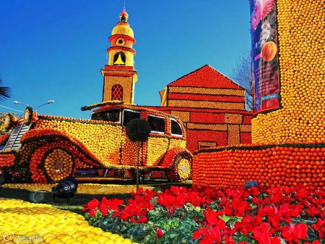 芒通是靠近意大利五彩斑斓的小城。巴黎是阴冷的,但芒通的二月阳光普照,天气也开始回暖。2月16日到3月3日,是芒通柠檬节。它始于1934年,全世界仅此一家绝无分店。整个活动期间需要动用145吨的柑橘类水果。 每年全球有超过二十多万的游客飞奔到芒通来看“柠檬”。