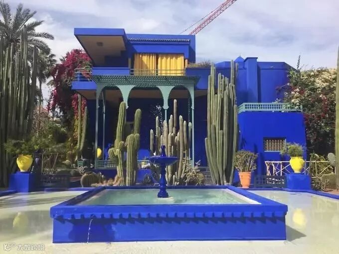 走到里面,蓝色水池、蓝色喷泉、蓝色别墅映入眼帘,这抹亮眼的蓝充满整个花园,甚至有个专属名字“马约尔蓝”。圣罗兰先生曾说,这里是他灵感的无尽源泉。