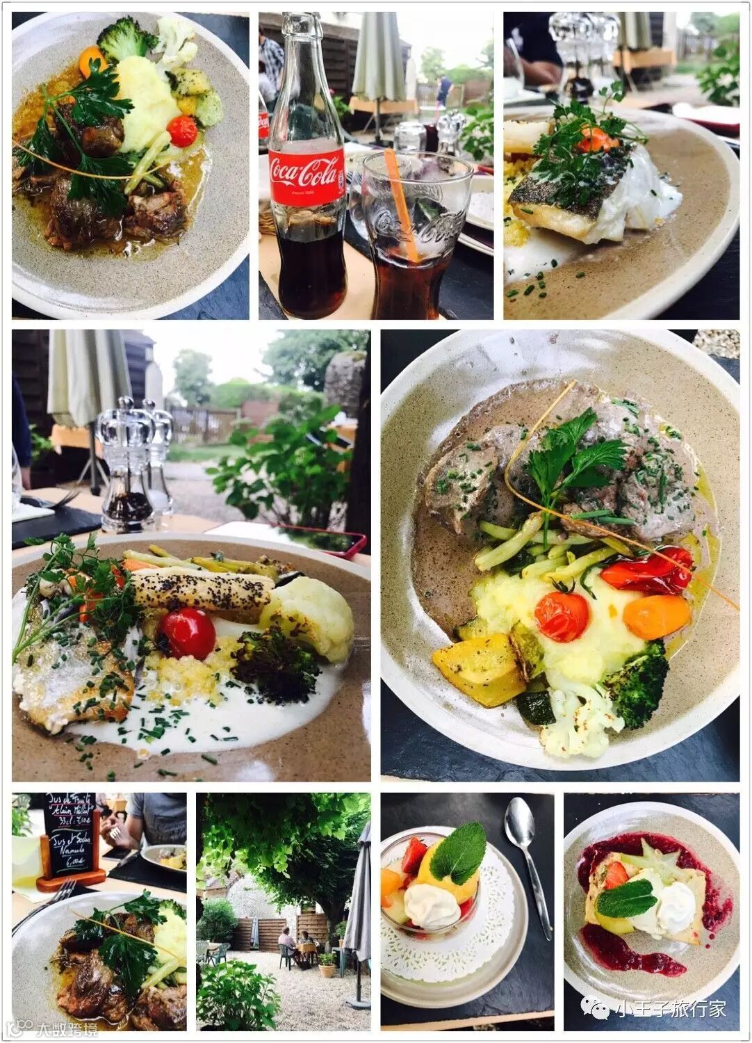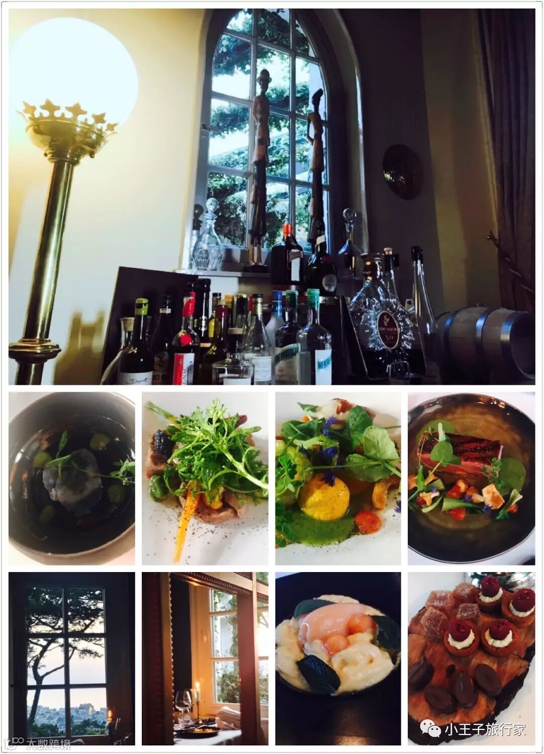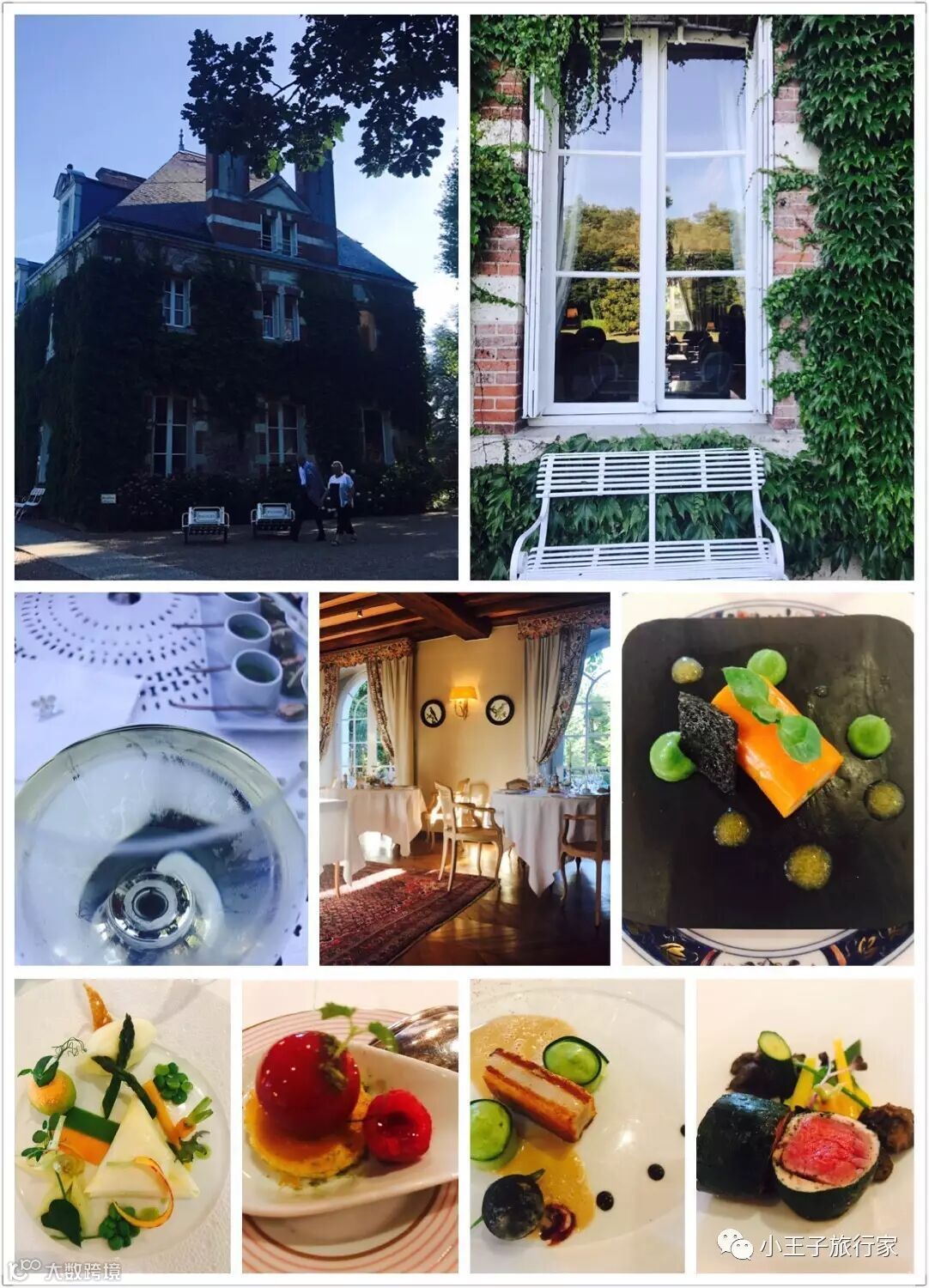 行程中的第一餐米其林二星餐厅在一座城堡里,环境优静,先在花园里喝餐前酒,再进入餐厅进入正餐。