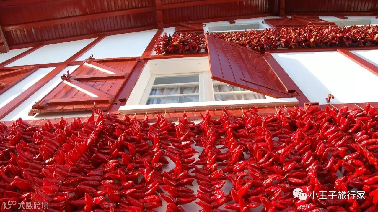 在去圣让德吕兹的路上,会经过欧洲著名的辣椒城埃斯佩莱特。这个小城是红彤彤的,因为当地居民会把辣椒串成长串挂在房子外面装饰自家的外墙。