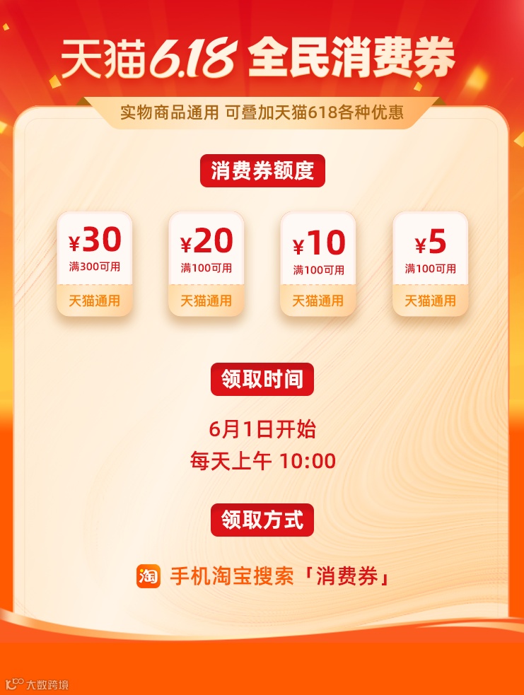 6月1日,天猫618正式启动售卖,一直持续到6月20日。消费券也从6月1日开始发放,消费者在淘宝App搜索“消费券”即可领取。