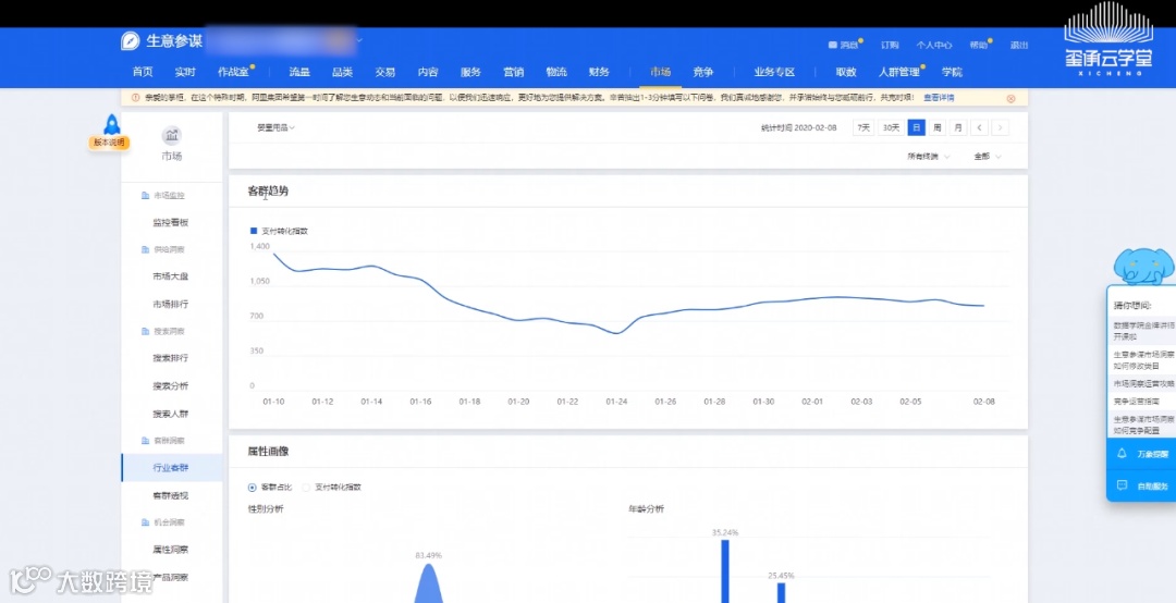 首先需要强调的是,要看行业人群标签,必须要购买生意参谋市场洞察专业版,只有市场洞察专业版才有这个功能。
