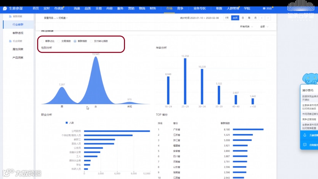 在刚进入淘宝或者刚准备一个新的类目进行扩张的时候,先了解行业人群,对于我们的店铺定位,产品开发方向都有很大帮助,也能让我们少走弯路。