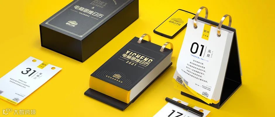 除了内容上真正取之于电商人用之于电商人,《2021电商思维日历》外观上延续了云学堂一贯的简约风,“黑黄”的专属色系极具辨识度,封面烫金字体与精致金属环相得益彰,配以立式底座,大气且稳稳放置。