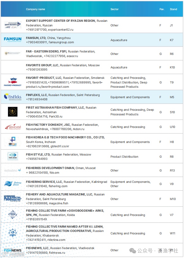 俄罗斯目前拥有680家渔业经营商,渔业市场的快速发展将会催生出更多的渔业经营商。俄罗斯圣彼得堡海鲜水产及渔业展览会Rus Fish Expo更是中国水产及渔业相关企业进入俄罗斯市场的最佳平台。