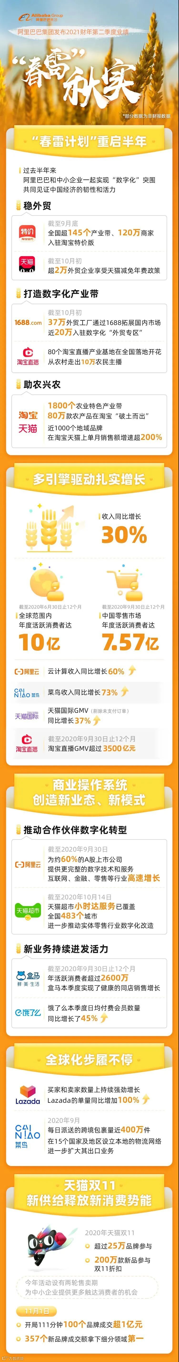 11月5日晚,阿里巴巴集团公布2021财年第二季度(自然年2020年9月季度)业绩。这也是阿里巴巴交上的一份支持中小企业数字化转型发展的成绩单。