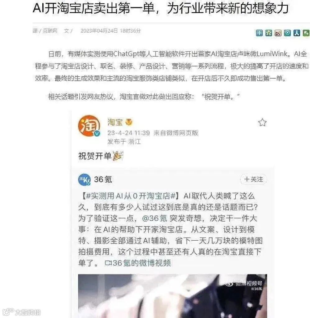 今年4月24日,AI开淘宝店卖出第一单的新闻刷屏了,这是继之前AI在游戏、办公、直播等场景应用后,AI在网购开店领域首次试水!