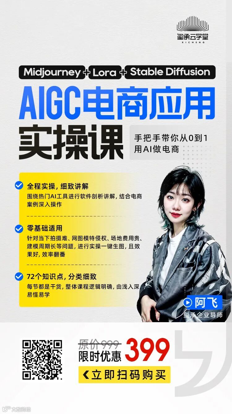 特别邀请到玺承云学堂AIGC导师阿飞老师,录制了一套非常详细的【AIGC电商应用实操课】!