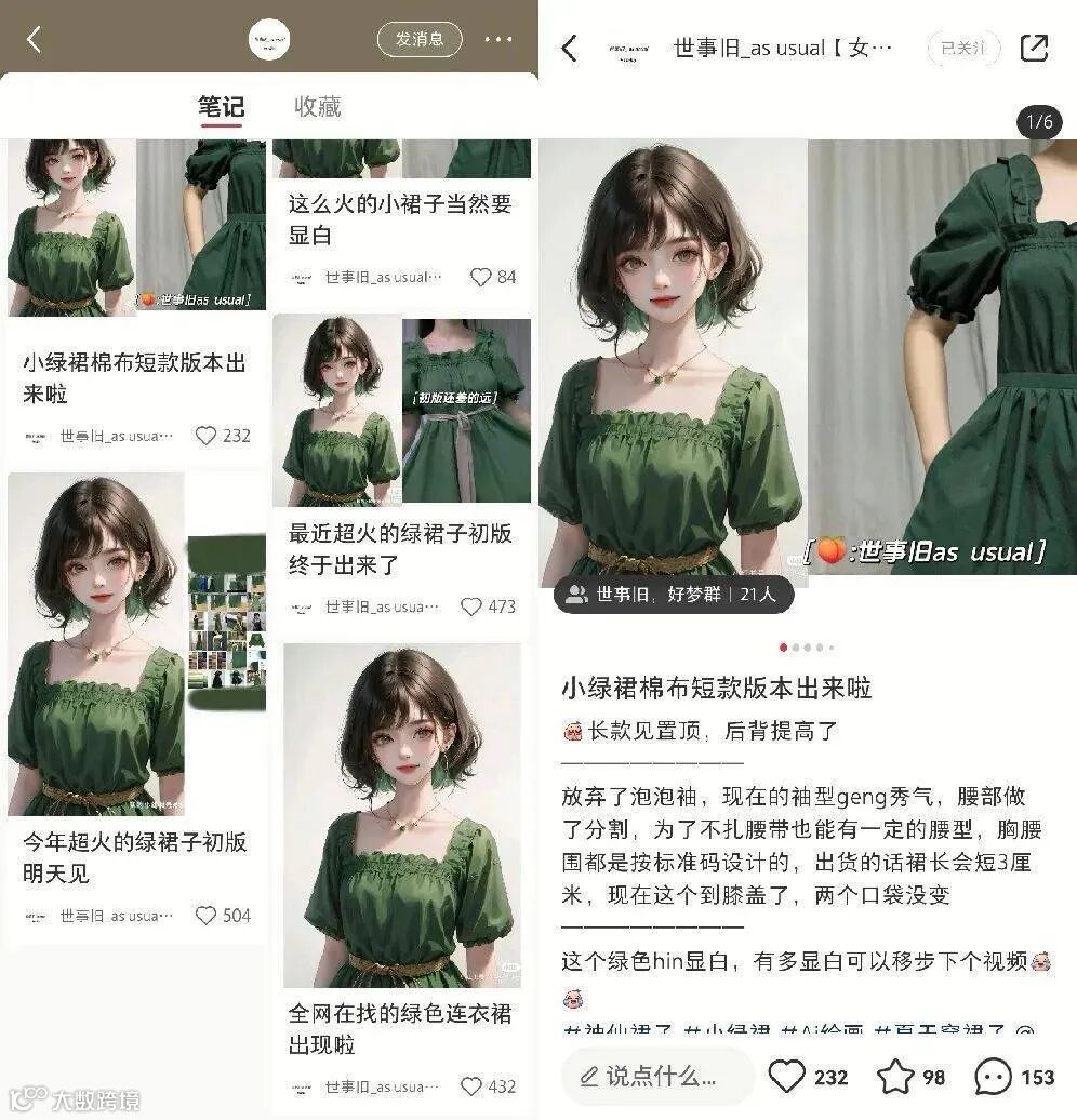 比如去年7月,一篇小红书爆火的小绿裙火出圈。