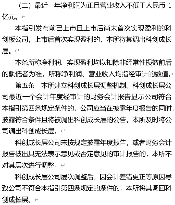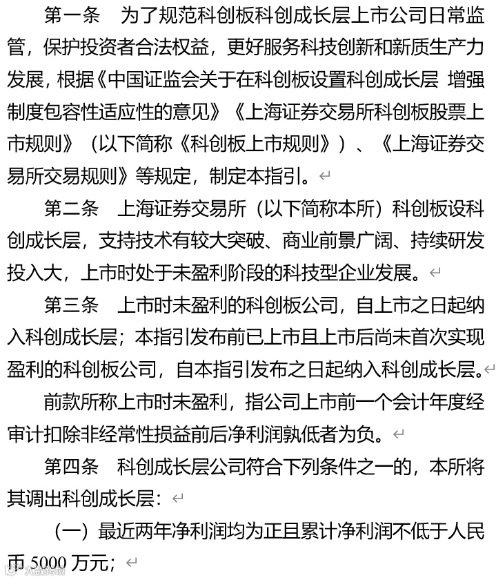 一是坚守科创成长层定位。聚焦《科创板意见》明确的科创成长层的定位,突出更好支持优质未盈利科技型企业这个改革重点,把好准入关。这次改革没有针对未盈利企业纳入科创成长层设置额外的上市门槛,存量32家未盈利企业将自指引发布实施之日起进入科创成长层,新注册的未盈利企业将自上市之日起进入。
